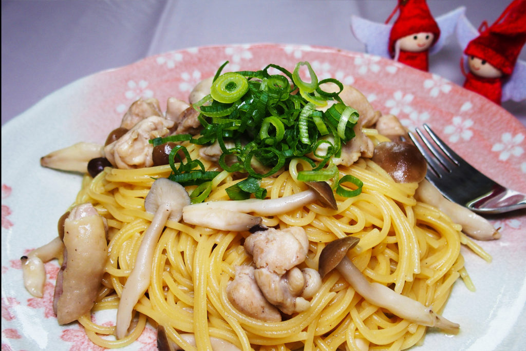 鶏肉としめじの和風パスタ